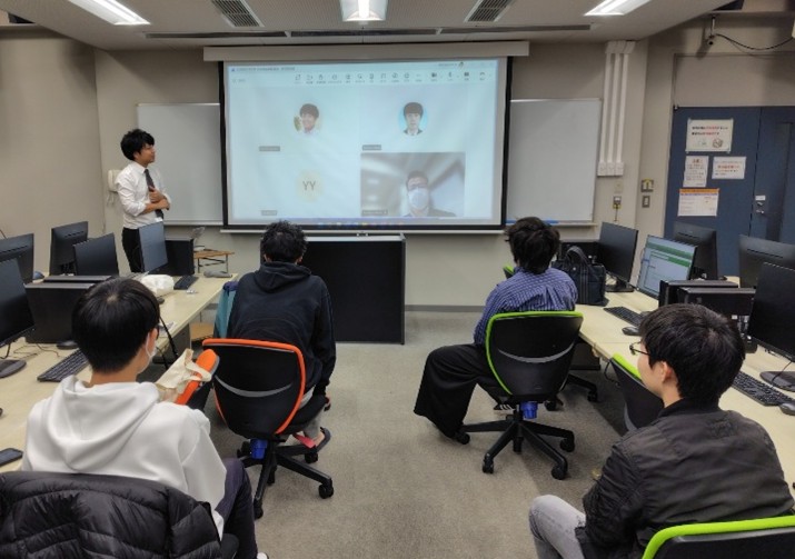 「社会調査実習Ⅱ」では、四日市大学の学びのフィールドである四日市市を対象とした社会調査を実践しています。11月18日の授業では、四日市市内にて自動運転実証実験を実施している株式会社マクニカ・スマートモビリティ事業推進部の奈良岡さん、武田さんにお越しいただき、社会調査の意義に関するご講演をして頂きました。また、学生たちが今年度行った社会調査の結果に対しても意見交換が行われました。