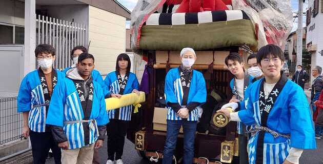 地元四日市で開催されるイベントとあって、総合政策学部の学生たちも、様々な形でこのイベントに関わりました。大会ボランティアとして会場で行列の整理をしたり、外国にルーツを持つ学生が通訳を担ったりしたほか、四日市とんてき協会のブースにスタッフとして参加した学生や、大入道山車の曳行に参加した学生、近鉄の特別列車「高速B-1グランプリ号」の企画運営に携わった学生など、数十人にも及ぶ学生が、多様な形で地域のイベントを支えていました。